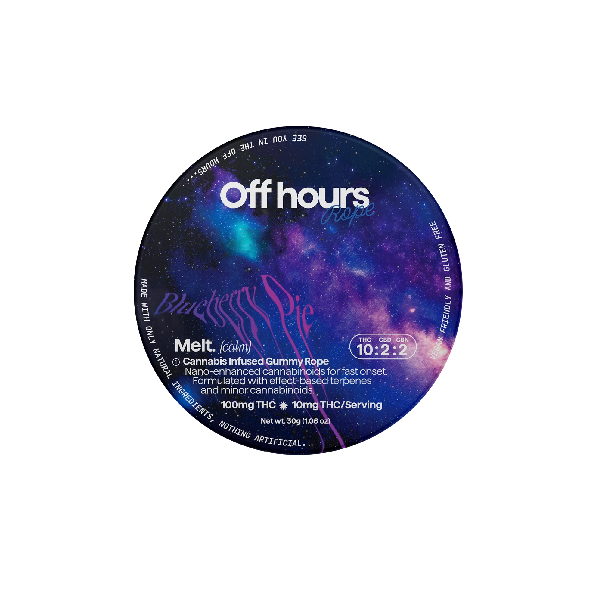 Experience deep relaxation with our Blueberry Pie Melt ropes. Specially formulated with THC, CBD, and CBN to help you melt.