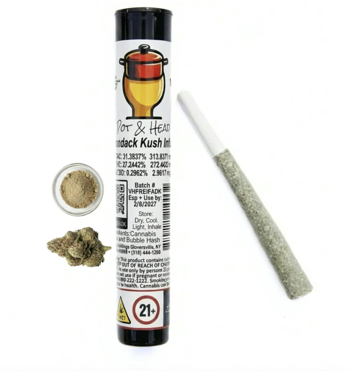 Pot & Head ADK Kush – Hash Infused – 1g is a premium hybrid offering designed for consumers looking for enhanced potency and a well-rounded experience. This expertly crafted product combines quality flower with rich, flavorful hash, creating a smooth yet powerful smoke that delivers depth in both taste and effects.
