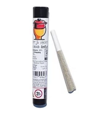 Expect a bold flavor profile layered with earthy kush notes, subtle sweetness, and hints of spice on the exhale. Infused with bubble hash for enhanced potency and intensity, this 1G pre-roll offers a thicker, more robust smoke and a longer-lasting experience compared to traditional flower.